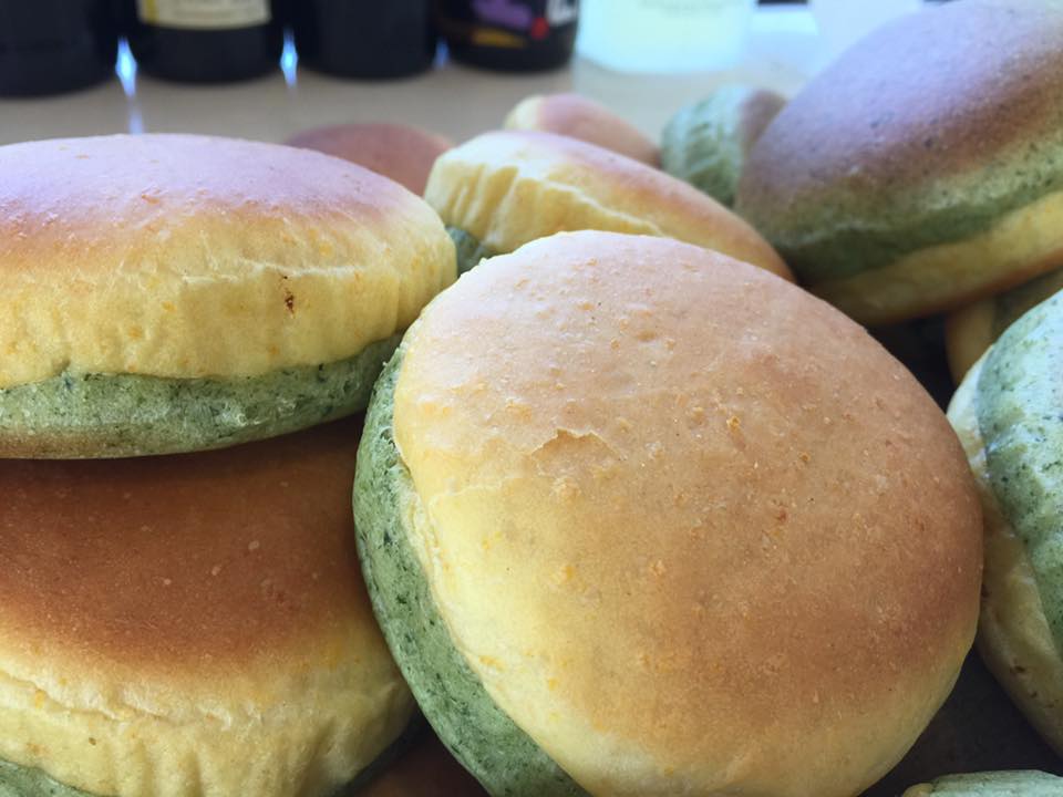 にんじんとほうれん草が1つになったパン。